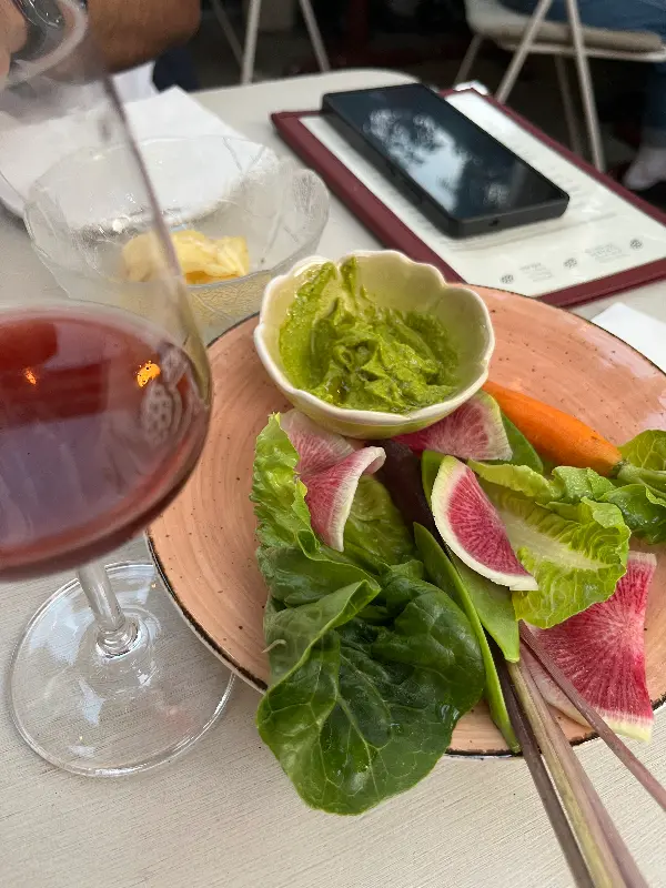 싱그러운 채소와 곁들여 마시는 와인 한 잔. 완벽한 조합이다.