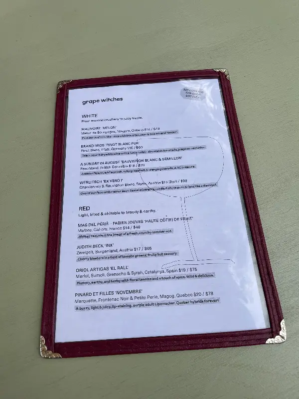 와인 셀렉션, 분위기, 그리고 직원들의 열정은 정말 훌륭했다. 이러한 강점을 바탕으로 서비스 품질을 향상시킨다면, 그레이프 위치는 토론토를 넘어 세계적인 내추럴 와인 명소로 발돋움할 수 있을 것이다. 다음 방문에서는 더욱 개선된 서비스를 경험할 수 있기를 기대하며, 그레이프 위치를 응원한다.