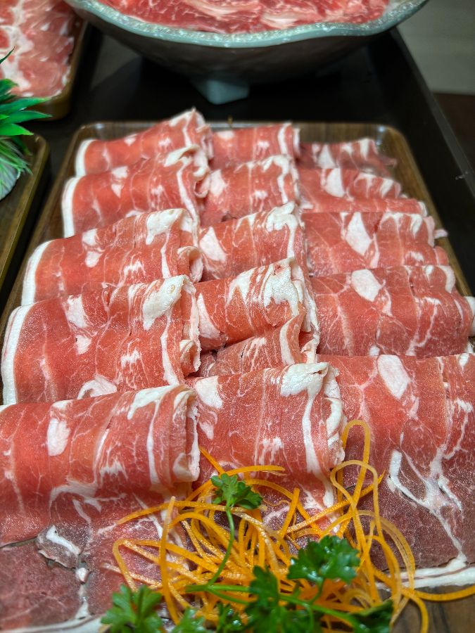 무제한 뷔페를 이용할 경우, 특히 몽골리안 양고기는 꼭 맛보아야 할 메뉴입니다. 얇게 썰린 양고기는 육수에 살짝 데쳐 입안에 넣는 순간 사르르 녹아내리며 고소한 육향을 가득 선사합니다.