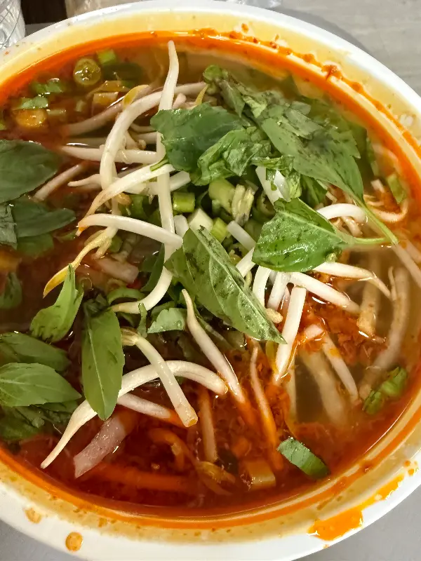 고민 끝에 주문한 메뉴는 구운 닭고기 쌀국수. 맑고 깊은 육수 위에 얹어진 구운 닭고기의 향긋한 풍미가 코를 자극했습니다. 신선한 채소와 쌀국수가 어우러져, 보기만 해도 군침이 돌았습니다.