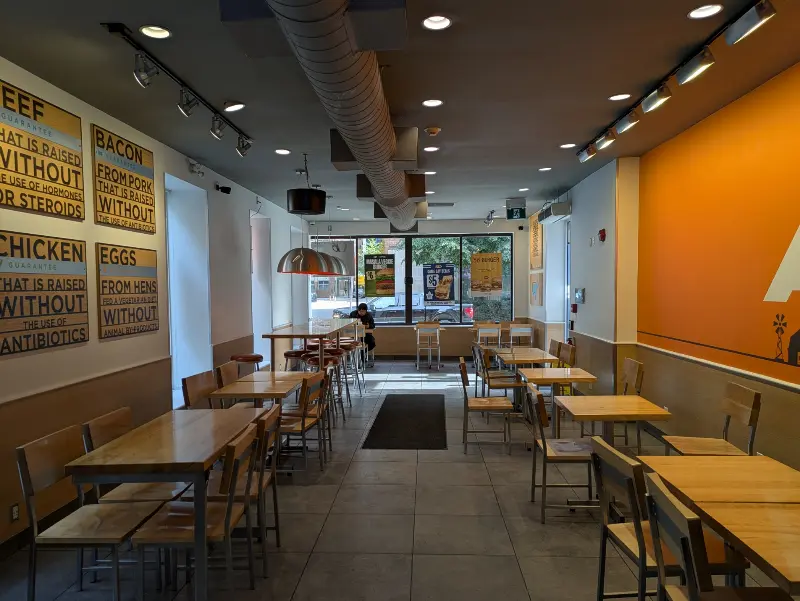 매장 안은 혼자 온 손님들도 편안하게 식사를 즐길 수 있도록 테이블 간 간격이 넓게 배치되어 있었다. 나무 재질의 테이블과 의자는 따뜻하고 아늑한 분위기를 자아냈다. 벽면에는 A&W의 역사와 관련된 사진들이 걸려 있어, 음식을 기다리는 동안 지루함을 달랠 수 있었다.