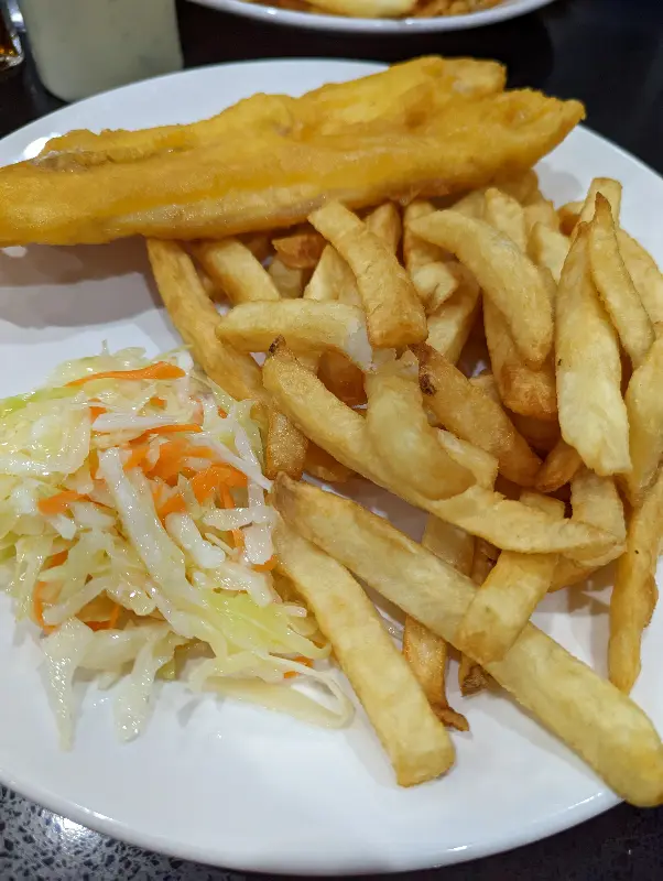문을 열고 들어서자 친절한 미소와 함께 반갑게 맞아주는 직원의 모습이 인상적이었다. 테이블을 안내받고 메뉴를 살펴보니 다양한 종류의 피쉬 앤 칩스가 준비되어 있었다. 대구, 해덕, 넙치 등 생선의 종류도 다양했고, 크기도 선택할 수 있었다. 우리는 일요일 스페셜 메뉴인 해덕과 감자튀김 세트를 주문했다. 주문은 간편했고 음식도 비교적 빨리 나왔다.