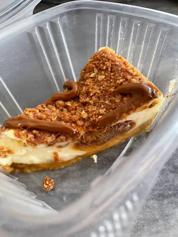 케이크는 겉은 바삭하고 속은 촉촉했다. 사과의 달콤함과 크럼블의 고소함, 그리고 치즈케이크의 부드러움이 환상적인 조화를 이루었다. 커피와 함께 먹으니 더욱 맛있었다.