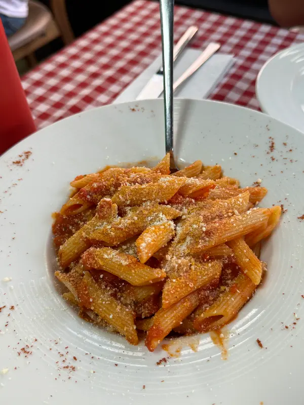 드디어 기다리고 기다리던 페투치니 파스타가 나왔다. 뽀얀 크림소스에 뒤덮인 면발 위로 파슬리 가루가 솔솔 뿌려져 있었다. 포크로 돌돌 말아 한 입 맛보는 순간, 감탄사가 절로 터져 나왔다. 한국에서 맛보던 투움바 파스타와는 비교불가! 훨씬 깊고 풍부한 크림의 풍미가 입안 가득 퍼져나갔다. 면발도 어쩜 이리 쫄깃한지! 펜네 파스타는 오버쿡 되었다는 리뷰도 있었지만, 페투치니는 완벽 그 자체였다.