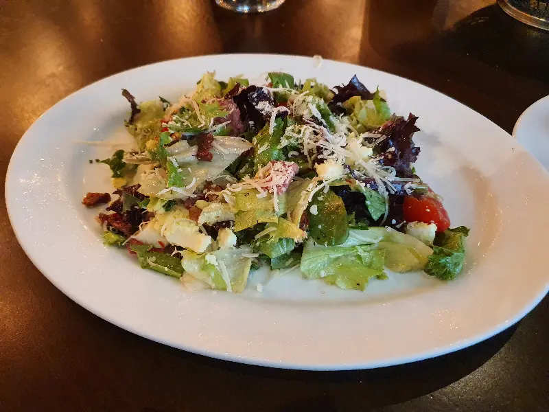 샐러드는 신선한 채소들의 아삭한 식감과 상큼한 드레싱이 완벽한 조화를 이루었습니다. 샐러드 위에 뿌려진 치즈는 풍미를 더하며 입맛을 돋우는 역할을 했습니다.