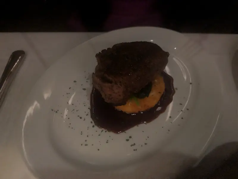 애피타이저로 주문한 스테이크 타르타르는 신선함 그 자체였습니다. 섬세하게 다져진 육질은 입 안에서 부드럽게 녹아내리며, 함께 제공된 바삭한 빵 위에 올려 한 입 베어 물면 고소함과 풍미가 환상적인 조화를 이룹니다. 특히, 중앙에 놓인 노른자는 마치 보석처럼 빛나며 시각적인 즐거움까지 더했습니다. 사진에서 보이는 것처럼, 신선한 재료 본연의 맛을 살린 정성이 느껴지는 메뉴였습니다.