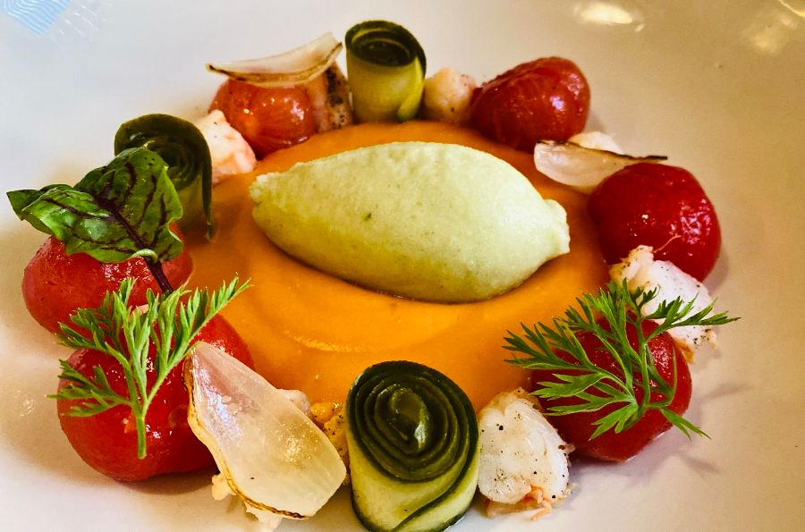 다음으로 맛본 것은 스페인 대표 음식인 가스파초였습니다. 붉은 토마토를 베이스로 한 차가운 수프는 더위에 지친 입맛을 단숨에 되살려주었습니다. 신선한 야채와 향긋한 허브의 조화는 입안 가득 풍성한 향을 선사했습니다. 한 모금 마실 때마다 몸속까지 시원해지는 기분이었습니다.