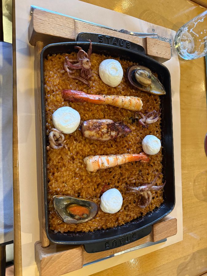 함께 방문한 일행은 메인 코스로 오징어 먹물과 문어를 넣은 밥을 주문했습니다. 검은 빛깔의 밥 위에 올려진 신선한 해산물은 입맛을 돋우는 훌륭한 조화를 이루었습니다. 한 입 맛보는 순간, 바다 내음이 입안 가득 퍼져 나가는 듯했습니다.