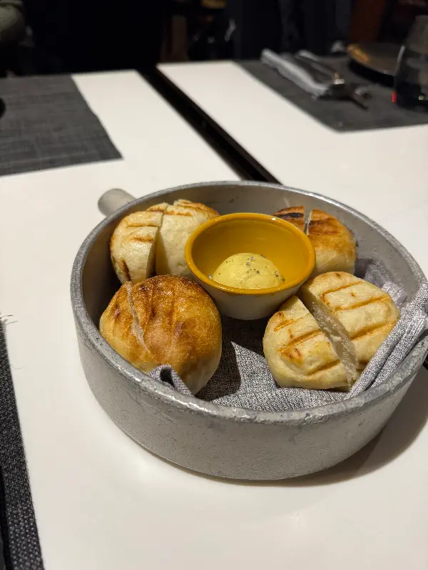주문을 마치자 따뜻한 빵과 버터가 나왔다. 겉은 바삭하고 속은 촉촉한 빵은 고소한 버터와 환상적인 조화를 이루며 입맛을 돋우었다. 빵을 먹으며 친구와 이야기를 나누는 동안, 곧이어 우리가 주문한 메뉴들이 하나둘씩 테이블 위에 놓이기 시작했다.