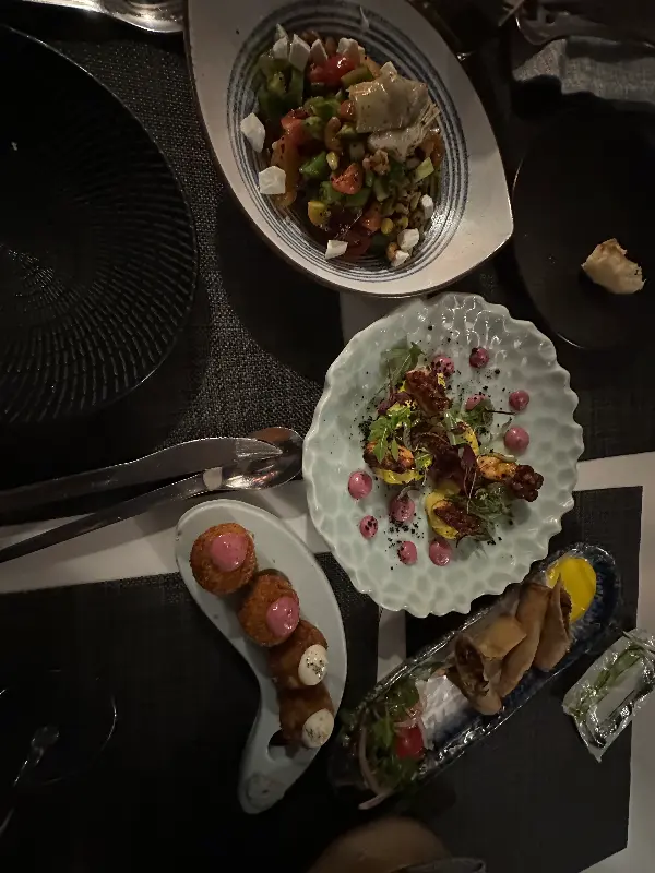 다음으로 카우사 소스를 곁들인 문어 요리가 나왔다. 부드러운 식감의 문어는 톡톡 터지는 날치알과 환상적인 조화를 이루었고, 카우사 소스의 은은한 단맛은 문어의 풍미를 더욱 깊게 만들어 주었다. 플레이팅 또한 예술 작품을 연상시킬 만큼 아름다웠다. 노란색 카우사 소스 위에 올려진 문어와 초록색 채소, 그리고 붉은색 소스의 조화는 시각적인 즐거움까지 선사했다.