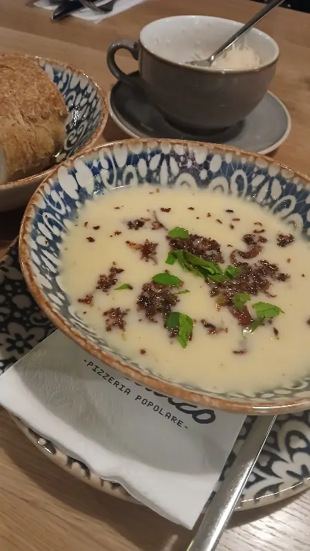 차가운 바람이 불어오는 날에는 따뜻한 수프가 간절해집니다. 이곳의 감자 수프는 직접 만든 듯 깊고 풍부한 맛을 자랑합니다. 부드러운 감자의 질감과 은은한 향신료의 조화는 추위를 잊게 해주는 따뜻한 위로가 됩니다. 특히 빵과 함께 곁들여 먹으면 더욱 맛있게 즐길 수 있습니다. 겉은 바삭하고 속은 촉촉한 빵을 수프에 찍어 먹으면 든든한 한 끼 식사로도 손색이 없습니다.