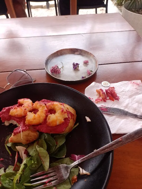 어느 날, 18 Ceroseis에서 계절 메뉴인 “금지된 사랑”을 주문했습니다. 크림이 듬뿍 발린 분홍색 토스트 위에 버터에 볶은 새우가 올려진 요리였죠. 처음에는 새우 꼬리가 보이는 새우만 골라 먹었습니다. 하지만, 크림에 묻혀 있던 나머지 새우 꼬리들을 먹는 순간, 끔찍한 경험을 했습니다. 크고 날카로운 새우 꼬리를 반쯤 씹어서 삼켰고, 바로 속이 불편해졌습니다. 나중에 크림에 묻혀 있던 나머지 새우 꼬리들을 꺼내 보니, 모두 크고 날카로웠습니다. 목이 너무 아팠습니다.