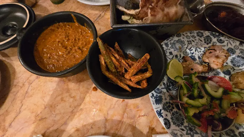 다만, 아쉬운 점도 있었습니다. 몇몇 리뷰에서 언급된 것처럼, 음식들이 다소 짜게 느껴졌다는 점입니다. 특히, 무슨 커리와 오크라 튀김은 짰다는 평이 있었는데, 제 입맛에도 마찬가지였습니다. 향신료가 강해서 한국에서 먹는 인도 음식과는 살짝 다르다는 리뷰처럼, 이 곳의 음식은 현지 입맛에 맞춰진 듯했습니다.