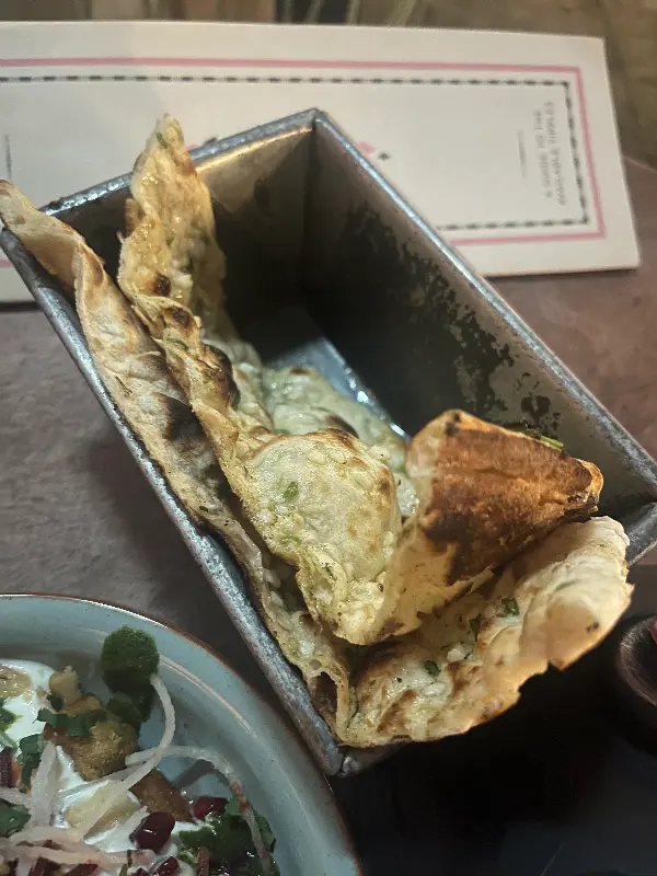 따끈따끈한 갈릭난은 쫄깃하면서도 부드러운 식감이 일품이었습니다. 특히, 루비 치킨 카레와 함께 먹으니 그 맛이 배가 되었죠. 난 위에 카레를 듬뿍 올려 한 입 베어 물면, 입안 가득 퍼지는 풍미는 그야말로 환상적이었습니다. 치즈난보다는 갈릭난을 추천한다는 리뷰처럼, 이 곳의 갈릭난은 꼭 맛봐야 할 메뉴입니다.