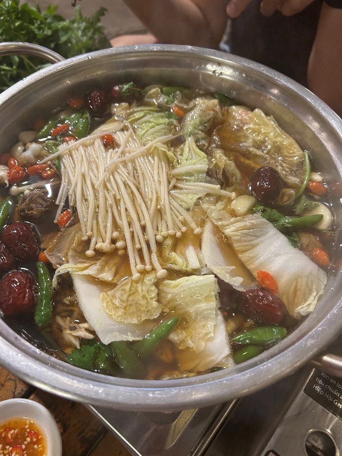 음식의 맛, 공간의 분위기, 그리고 서비스까지, ‘티엠 냐 가오’는 어느 하나 부족함 없는 완벽한 미식 경험을 선사했습니다. 핫팟의 육수는 맛의 균형이 완벽하게 잡혀 있었고, 곁들여 먹는 스프링롤 역시 바삭하고 고소한 맛이 일품이었습니다. 특히, 매콤새콤한 디핑소스는 닭고기와 채소의 맛을 한층 더 끌어올리는 마법 같은 역할을 했습니다. 이 소스는 라임, 고추, 그리고 다른 비밀 재료들이 완벽한 비율로 섞여 만들어진 것으로 보였는데, 그 맛의 조화가 정말 예술적이었습니다.