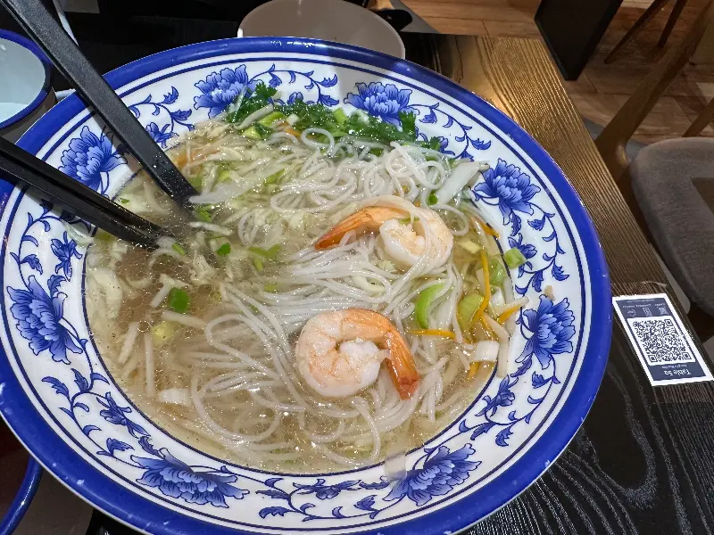 수많은 메뉴 중 저의 선택은 단연 소고기 국수(우육면)였습니다. 면을 직접 뽑는다는 설명에 기대감이 더욱 커졌습니다. 잠시 후, 김이 모락모락 나는 소고기 국수가 테이블에 놓였습니다. 뽀얀 국물 위로 얹어진 부드러운 소고기와 신선한 채소는 보기만 해도 군침이 돌았습니다.