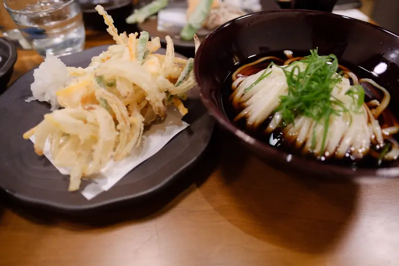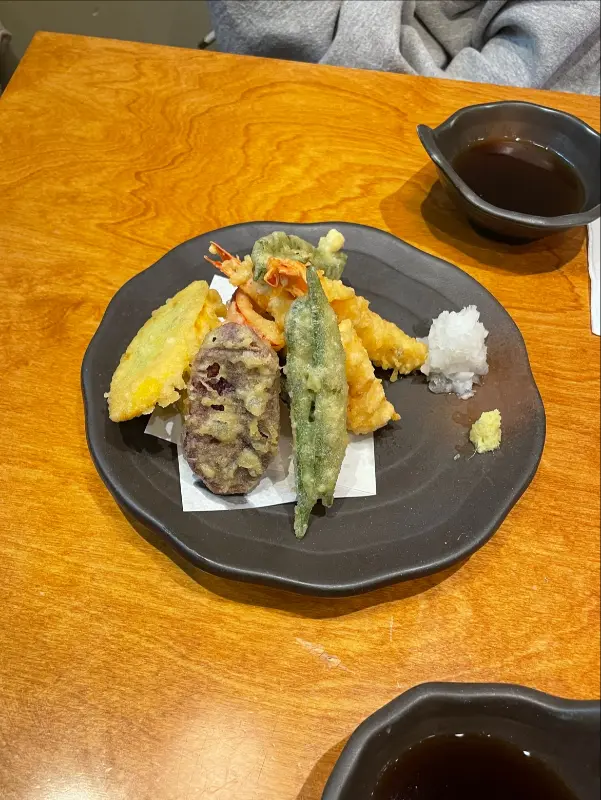 튀김 종류도 다양하게 준비되어 있었다. 야채 튀김, 새우 튀김, 아게모찌 등 하나하나 정성스럽게 튀겨져 나왔다. 특히 야채 튀김은 적당히 바삭한 식감이 인상적이었다. 기름기도 쏙 빠져 느끼하지 않았고, 신선한 야채의 풍미를 그대로 느낄 수 있었다. 새우 튀김은 새우 살이 통통하게 올라 씹는 맛이 좋았다. 튀김옷도 얇고 바삭해서 새우 본연의 맛을 해치지 않았다. 아게모찌는 겉은 바삭하고 속은 쫄깃한 떡의 식감이 독특했다. 달콤한 소스와 함께 먹으니 정말 맛있었다.