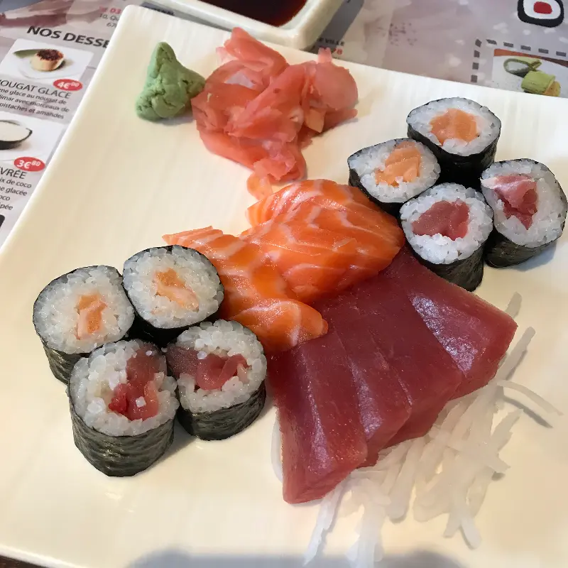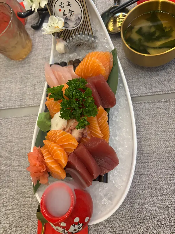 스시 세트는 신선한 재료만을 사용해서 만든, 다양한 종류의 초밥으로 구성되어 있었다. 밥알은 적당히 찰기가 있었고, 생선은 입안에서 사르르 녹아내리는 듯했다. 특히 연어 초밥은 신선함이 그대로 느껴져 정말 맛있었다.