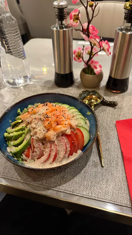 고민 끝에, 나는 이곳의 시그니처 메뉴인 ‘푸아그라 마키’와 ‘스시 세트’를 주문했다. 잠시 후, 정갈하게 차려진 음식이 눈앞에 놓였다. 푸아그라 마키는 부드러운 푸아그라와 신선한 채소, 그리고 톡톡 터지는 날치알의 조화가 환상적이었다. 입안에 넣는 순간, 풍부한 맛과 향이 입안 가득 퍼져 나갔다.