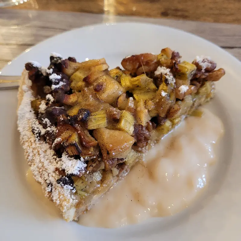 마지막으로 나온 루바브&애플파이는 오늘의 메뉴라 더욱 특별하게 느껴졌다. 따뜻한 파이 위에 루바브와 사과가 듬뿍 올라가 있었고, 달콤한 시럽이 촉촉하게 적셔져 있었다.