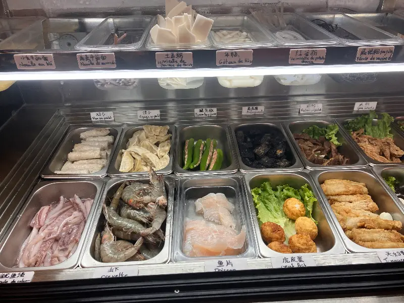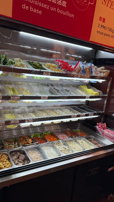 문을 열자마자 펼쳐지는 다채로운 향연에 정신을 놓을 뻔했다. 갓 손질된 듯 윤기가 흐르는 채소들, 붉은 빛깔의 육류, 탱글탱글한 해산물까지, 마치 미식의 세계로 초대하는 듯한 화려한 진열이 눈길을 사로잡는다. 파리에서 맛보는 마라탕이라니, 그 특별한 경험을 놓칠 수 없었다.