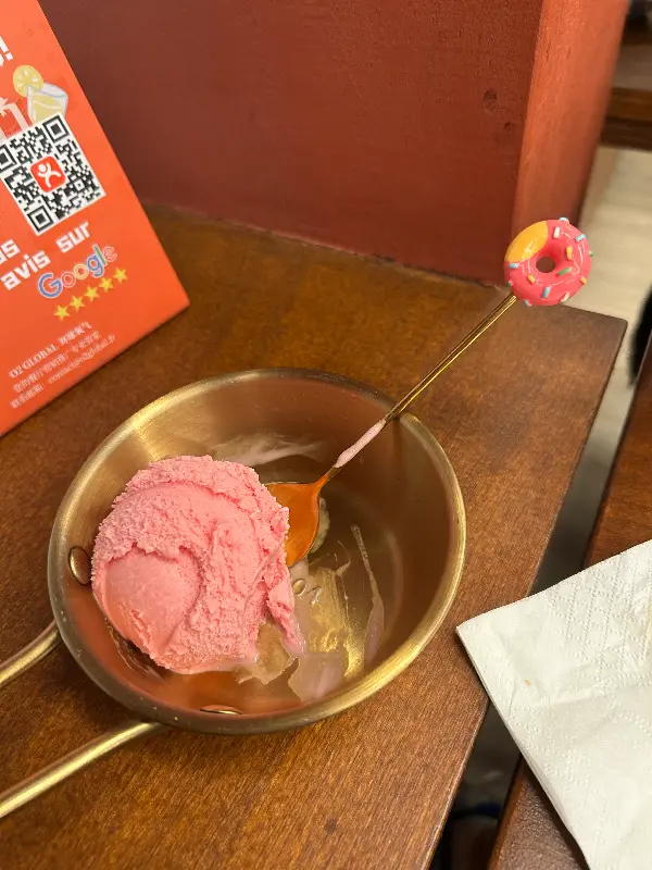 매콤한 마라탕으로 얼얼해진 입안을 달콤하게 달래줄 무료 아이스크림도 준비되어 있다. 아이스크림은 부드럽고 달콤해서 입가심으로 제격이었다. 앙증맞은 도넛 모양의 장식이 꽂힌 아이스크림 스푼은 귀여움을 더했다. 몇 번이나 가져다 먹었는지 모른다.