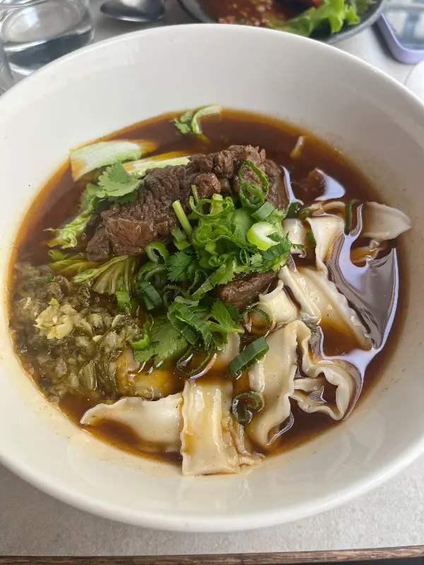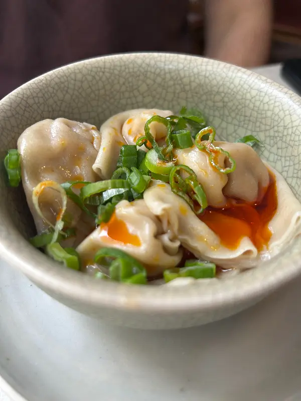 메뉴를 펼쳐 들고 고민하다가, 가장 먼저 눈에 띈 완탕을 주문했다. 잠시 후, 테이블에 놓인 완탕은 보는 것만으로도 군침이 돌았다. 얇은 만두피 안에는 촉촉한 속이 가득 차 있었고, 특제 소스와 함께 어우러져 환상적인 맛을 선사했다. 한 입 베어 무는 순간, 입 안에서 살살 녹는 듯한 부드러운 식감과 풍부한 육즙이 황홀경을 느끼게 했다. 특히 소스의 깊은 풍미는 잊을 수 없는 맛이었다. 곁들여진 파의 향긋함은 완탕의 맛을 한층 더 끌어올렸다.