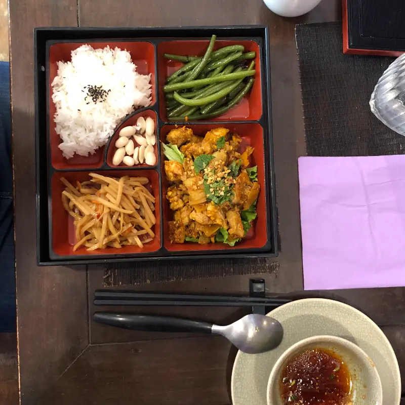 다음으로 주문한 메뉴는 포크 벤또였다. 벤또는 정갈하게 담겨 나온 모습부터가 예술이었다. 윤기가 흐르는 밥과 입에서 녹는 듯한 부드러운 고기, 그리고 죽순과 양파쫑으로 추정되는 반찬들이 조화롭게 어우러져 있었다.