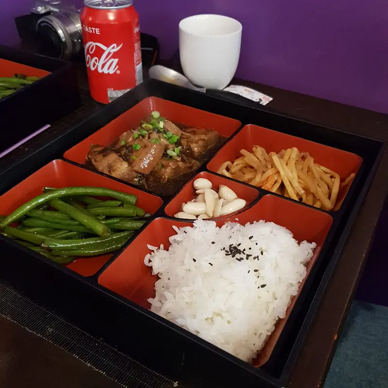 고기는 느끼할 때쯤 죽순과 양파쫑이 느끼함을 잡아주어 질리지 않고 계속 먹을 수 있었다. 밥 위에 고기를 얹어 한 입 가득 넣으니, 그야말로 꿀맛이었다. 다만, 밥 양이 조금 적어 평소 많이 먹는 사람들에게는 부족할 수도 있겠다는 생각이 들었다.