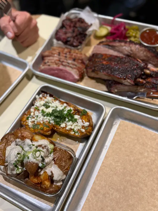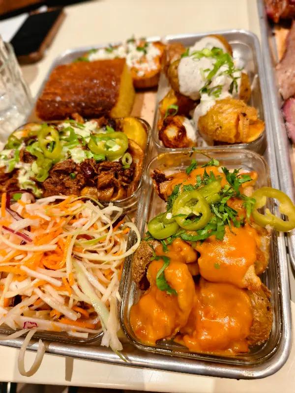 브리스킷, 풀드 포크 번, 감자튀김, 다채로운 소스까지, 완벽한 한 상 차림.