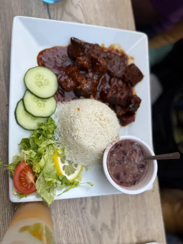 메인 요리로는 문어 스튜, 카브리 콜롬보 등 다양한 선택지가 있습니다. 특히 문어 스튜는 부드럽게 익혀진 문어와 풍부한 향신료가 어우러져 깊은 풍미를 자랑합니다. 곁들여 나오는 붉은 콩은 살짝 싱겁다는 평도 있지만, 전체적인 조화를 해치지 않습니다. “고향처럼 맛있을까 싶었는데, 주문한 음식은 정말 기대 이상이었어요.”라는 리뷰처럼, 티 카세 크레올의 음식은 단순한 맛을 넘어 추억과 향수를 불러일으키는 특별함이 있습니다.