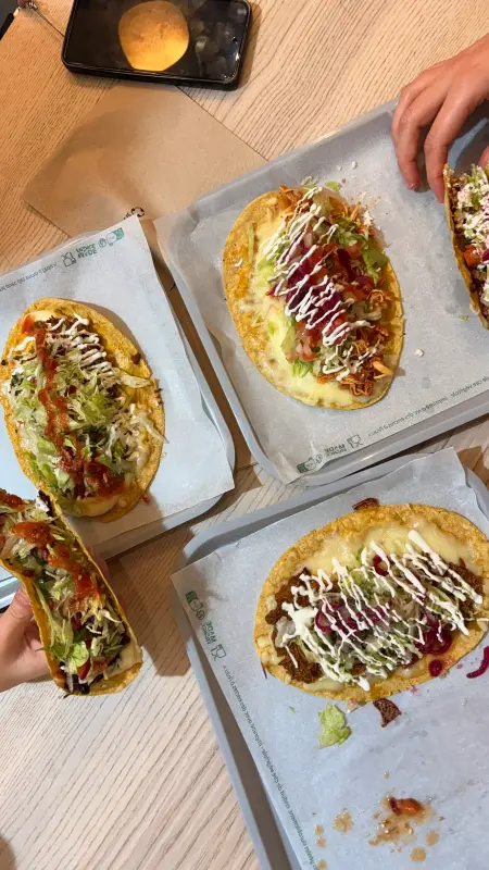 문을 열고 들어서는 순간, 밝은 미소로 맞아주시는 직원분들 덕분에 기분 좋게 식사를 시작할 수 있었다. 작고 아담한 공간은 아늑한 분위기로 가득했고, 벽에 걸린 멕시코풍 장식품들이 이국적인 정취를 더했다. 테이블에 앉아 메뉴판을 펼쳐보니, 미니 타코를 비롯한 다양한 메뉴들이 눈길을 사로잡았다. 특히 선인장 타코와 같은 채식 메뉴가 준비되어 있다는 점이 인상적이었다. 메뉴를 고르는 동안에도 직원분들은 친절하게 메뉴에 대해 설명해주셨고, 아랍어로도 간단한 대화가 가능하다는 점이 더욱 편안하게 느껴졌다.