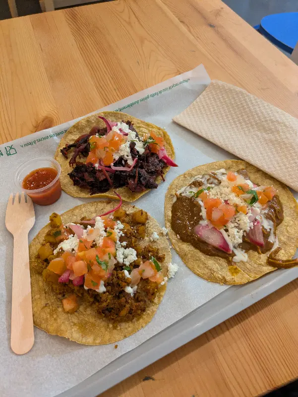 주문한 음식이 나오기까지 잠시 기다리는 동안, 레스토랑 안은 맛있는 냄새로 가득 찼다. 드디어 기다리고 기다리던 타코가 눈 앞에 놓였다. 알록달록한 색감의 타코는 보기만 해도 군침이 돌았다. 한 입 베어 무는 순간, 신선한 재료들의 풍미가 입안 가득 퍼져 나갔다. 정성껏 조리된 음식은 향신료의 완벽한 조화를 이루며, 혀끝을 황홀하게 만들었다. 특히 자메이카 타코는 매콤하면서도 달콤한 맛이 일품이었고, 감자/초리조 타코는 아이들이 먹기에도 부담 없는 순한 맛이었다.