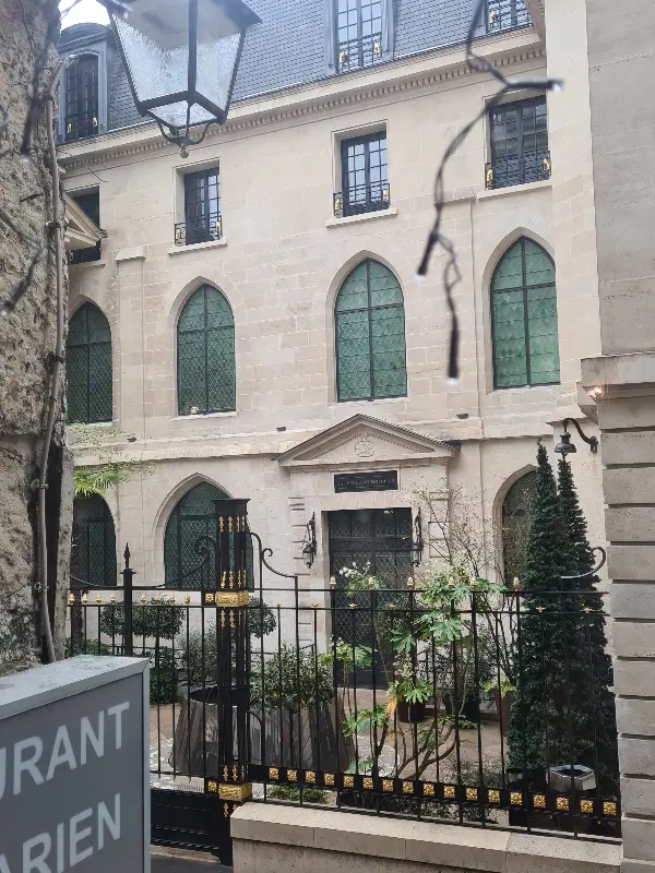 레스토랑 입구는 고풍스러운 건물 외관과 어우러져 파리의 정취를 더합니다.