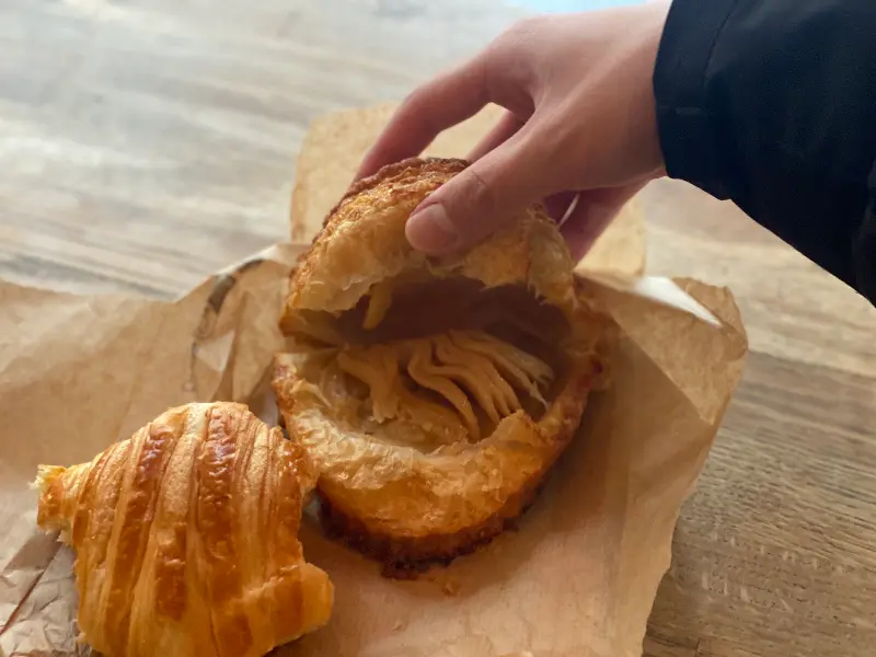 이곳의 바게트는 겉은 바삭하고 속은 쫄깃한, 완벽한 겉바속쫀의 정석을 보여준다. 한 입 베어 물면 고소한 풍미가 입안 가득 퍼지고, 은은하게 느껴지는 산미는 빵의 맛을 한층 더 깊게 만들어준다. 보르디에 버터를 발라 먹으니 그 풍미가 더욱 살아나는 듯했다. 아침 일찍 문을 열어 갓 구운 바게트를 맛볼 수 있다는 점도 큰 매력이다.