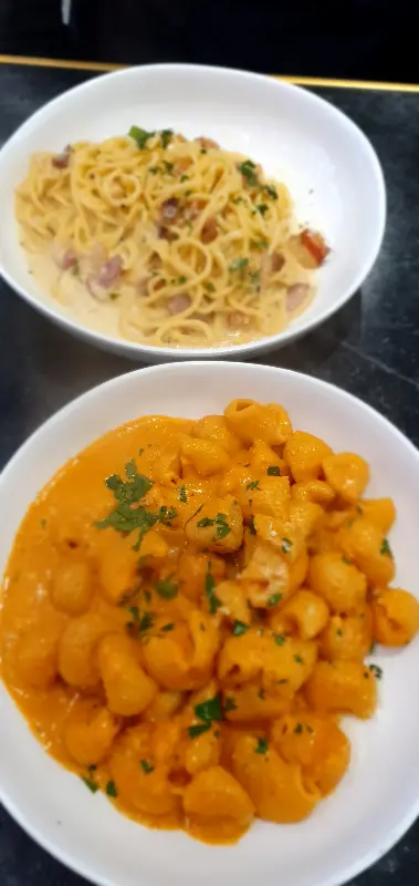 카르보나라 외에도 다양한 파스타 메뉴들이 준비되어 있습니다. “루마슈 마르살라 버섯”, “뱅상스 페이버릿”, “맷 페이버릿” 등 이름만 들어도 궁금해지는 메뉴들은, 평소에 맛보지 못했던 독특한 풍미를 선사합니다. 특히 트러플 향이 은은하게 느껴지는 파스타는, 고급스러우면서도 깊이 있는 맛으로 미식가들의 입맛을 사로잡습니다. 매콤한 맛을 좋아하는 분들을 위한 “맷 페이버릿” 또한 놓칠 수 없는 메뉴입니다. 사진 속 “루마슈 마르살라 버섯” 파스타는 촉촉한 버섯과 녹진한 소스가 어우러져 풍성한 맛을 자랑합니다 (Image 5).