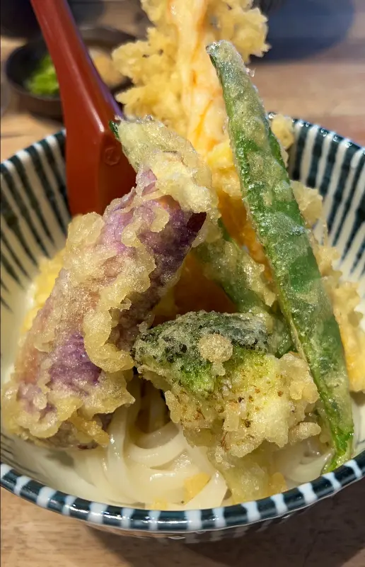 새우튀김은 바삭하고 고소했습니다. 튀김옷은 얇고 바삭했으며, 새우는 탱글탱글했습니다. 튀김을 국물에 살짝 적셔 먹으니, 고소함과 짭짤함이 어우러져 더욱 맛있었습니다. 파와 김 가루는 우동의 풍미를 더욱 깊게 만들어 주었습니다.