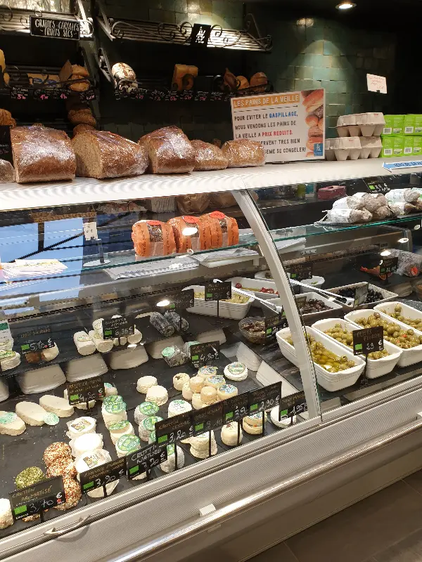 빵 옆으로는 치즈 코너가 자리하고 있다. 콩테 치즈, 브리 치즈, 염소 치즈 등 프랑스를 대표하는 다양한 치즈들이 준비되어 있다. 콩테 치즈는 웬만한 치즈 가게보다 훨씬 맛있다는 리뷰처럼, 깊고 풍부한 맛을 자랑한다. 와인과 함께 곁들이면 더할 나위 없는 최고의 조합일 것이다.