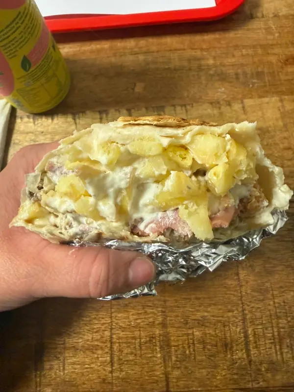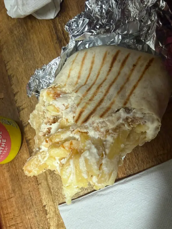 타코의 단면을 살펴보니, 실망감은 더욱 커졌다. 사진에서 보이는 것처럼, 정말로 감자튀김이 대부분을 차지하고 있었다. 예전에는 다양한 재료들이 조화롭게 어우러져 환상적인 맛을 냈었는데, 이제는 값싼 감자튀김으로 양만 채운 듯한 인상을 받았다. 2년 넘게 단골이었다는 방문객의 “품질이 떨어진 게 너무 아쉽다”는 리뷰가 가슴에 와닿았다.