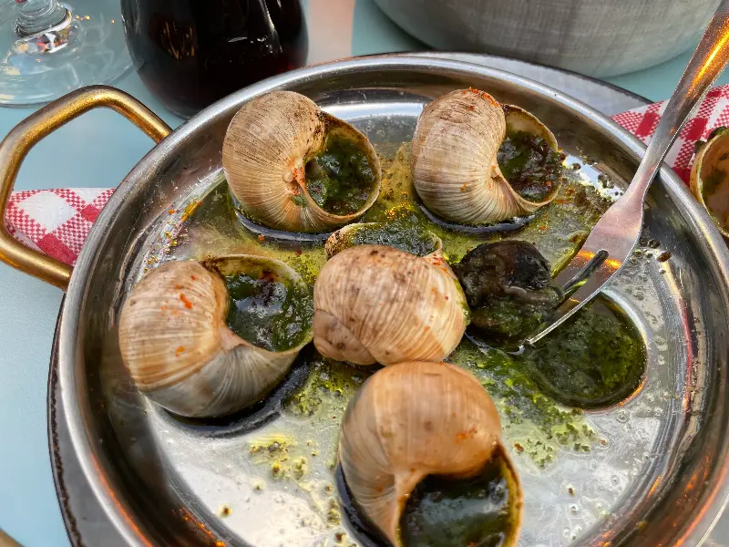 싱싱한 달팽이 요리는 동그란 전용 팬에 담겨 나오는데, 짙은 녹색의 바질 오일이 자작하게 깔려 있습니다. 겉은 살짝 그을려져 더욱 먹음직스러워 보입니다. 뜨거운 김이 살짝 올라오는 모습은 입맛을 더욱 돋우었습니다.