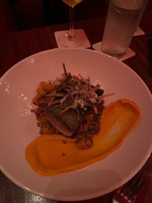 메뉴판을 찬찬히 살펴보던 중, 셰리 버섯 크림 소스, 야생 버섯, 파마산 치즈로 만든 세이지 브레드 푸딩이 눈에 띄었습니다. 평소 버섯을 좋아하는 저에게는 거부할 수 없는 메뉴였죠. 잠시 후, 테이블에 놓인 브레드 푸딩은 보기만 해도 군침이 돌았습니다. 하지만 너무 뜨거워서 15분 정도 식혀야 했습니다. 인내심을 가지고 기다린 끝에 드디어 맛을 볼 수 있었습니다. 크리미한 소스는 입안에서 부드럽게 녹아내렸고, 향긋한 버섯과 빵의 깊은 풍미는 환상적인 조화를 이루었습니다. 한 입, 한 입 음미할 때마다 감탄사가 절로 나왔습니다. 정말 훌륭한 맛이었습니다!
