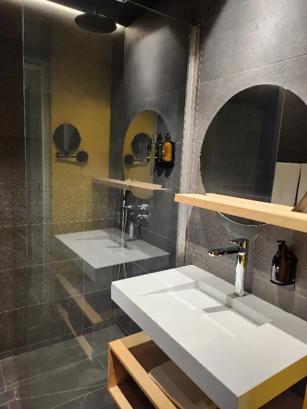 객실 내부는 모던한 디자인으로 꾸며져 있으며, 필요한 모든 시설이 잘 갖춰져 있습니다. 다만, 몇몇 후기에서 언급되었듯이, 욕실 세면대 디자인은 약간 아쉬울 수 있습니다. 물이 넘치지 않도록 주의해야 합니다.