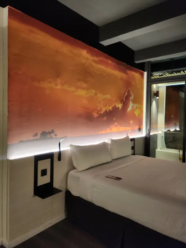 객실 벽면에 그려진 석양 그림은 따뜻하고 편안한 분위기를 더합니다. 은은한 조명 아래 침대에 누워 석양을 바라보는 것은 잊지 못할 경험이 될 것입니다.
