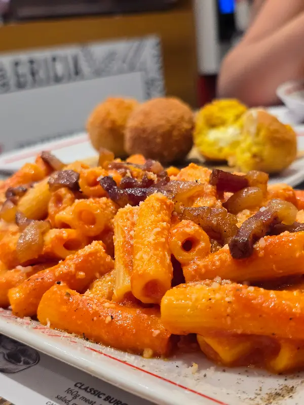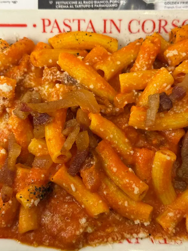 아마뜨리치아나는 완벽하게 익은 파스타와 진하고 풍미 가득한 소스의 조화가 일품입니다. 모든 맛이 완벽하게 어우러져 잊을 수 없는 미식 경험을 선사합니다. 리뷰에서도 “파스타는 완벽하게 익었고 소스는 진하고 풍미가 정말 좋았어요! 모든 맛이 딱 적당했어요! 정말 최고예요 ❤️❤️❤️😍”라는 극찬이 쏟아졌습니다.