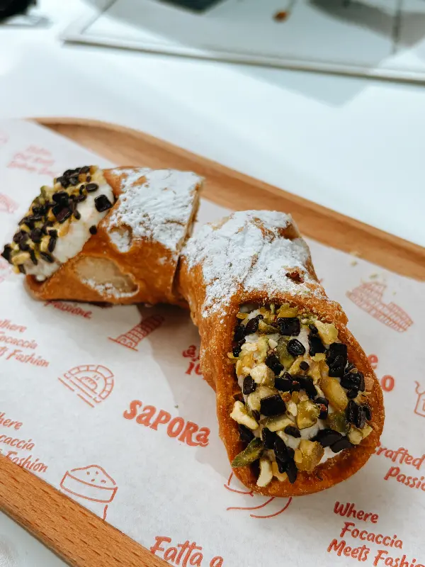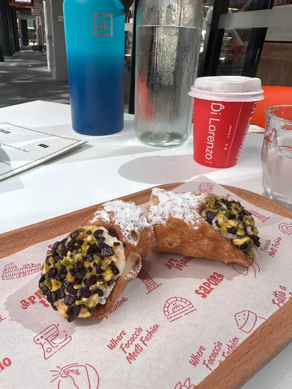 식사를 마치고, 쇼케이스 안에 놓인 카놀리에 시선이 멈췄다. 바삭한 겉 껍질 안에 달콤한 크림이 가득 채워진 이탈리아 전통 디저트다. 피스타치오와 초콜릿 칩이 듬뿍 뿌려진 모습은 그 유혹을 뿌리치기 힘들게 만들었다.
