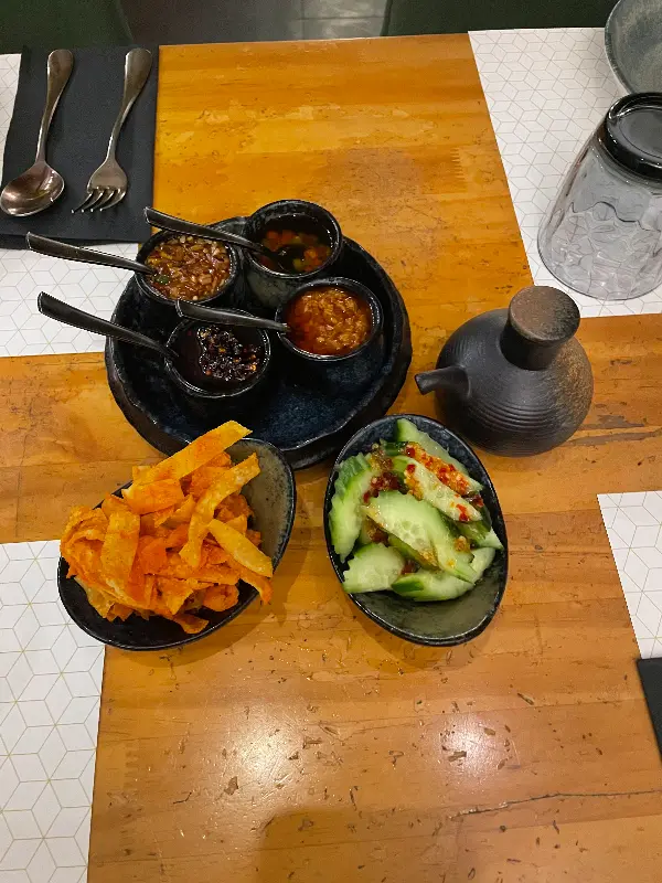 스티키 라이스의 매력은 단순히 맛있는 음식에만 있는 것이 아닙니다. 이곳에서는 바삭한 튀김과 상큼한 ‘키라’ 샐러드를 무료로 제공합니다. 짭짤하고 바삭한 튀김은 입맛을 돋우는 데 제격이며, 신선한 야채와 새콤달콤한 드레싱이 어우러진 ‘키라’ 샐러드는 느끼함을 잡아주고 입안을 깔끔하게 정리해 줍니다. 메인 메뉴를 주문하기 전, 이 두 가지 에피타이저만으로도 스티키 라이스의 매력에 푹 빠지게 될 것입니다.