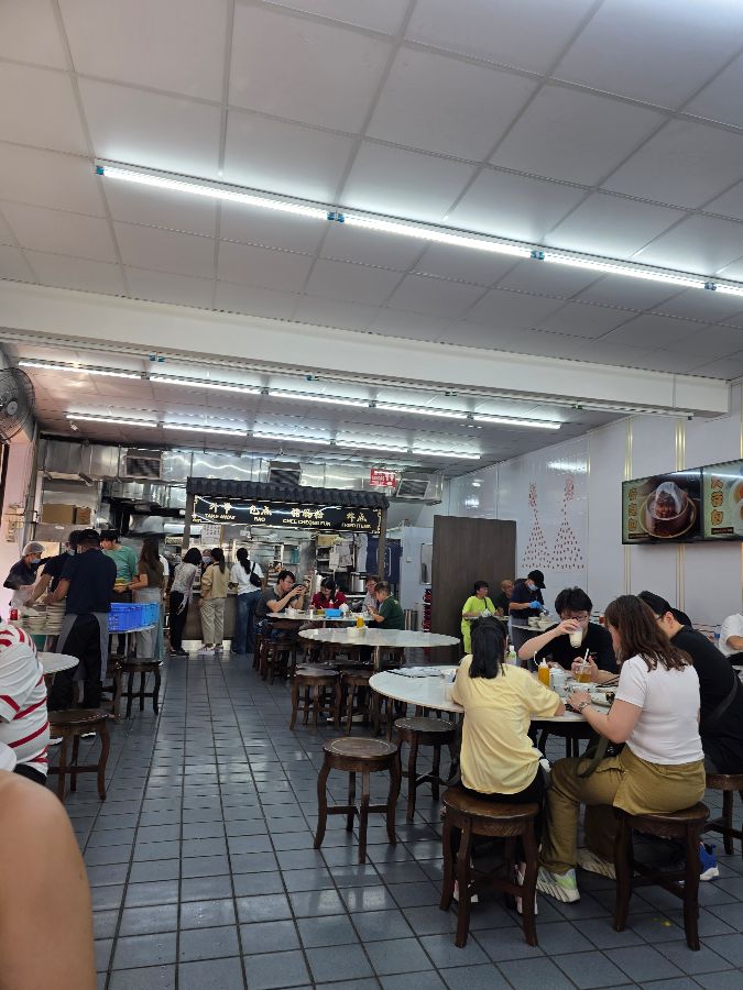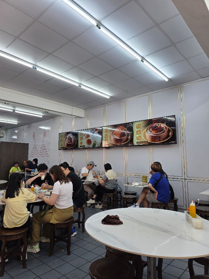 식당 내부는 낡았지만 정겹고 활기찬 분위기로 가득합니다. 밝은 조명 아래 딤섬 메뉴판이 길게 걸려 있는 모습은 이곳의 오랜 역사를 짐작하게 합니다. 다만, 에어컨이 없는 점은 아쉬움으로 남습니다. 특히 안쪽에 앉으면 더위를 심하게 느낄 수 있으니, 가능하다면 바깥쪽에 앉는 것이 좋습니다. 하지만 이러한 작은 불편함도 직원들의 친절함과 맛있는 음식 앞에서 금세 잊혀집니다.