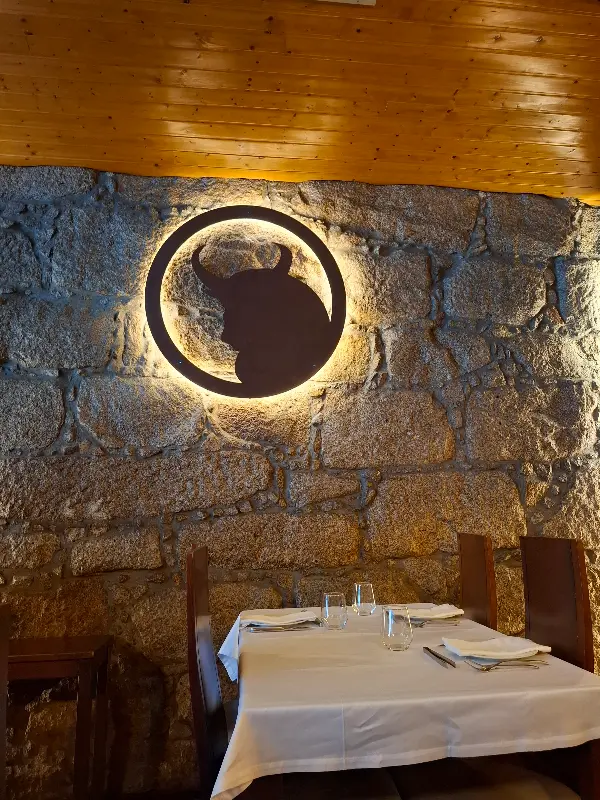 벽돌로 마감된 벽면과 따뜻한 나무 천장은 편안하면서도 고급스러운 분위기를 연출했다. 벽에 걸린 소 그림 장식은 이곳이 고기 요리 전문점임을 은근히 드러내는 듯했다. 테이블 위에는 깨끗하게 다려진 흰색 테이블보와 반짝이는 유리잔, 은색 식기들이 가지런히 놓여 있었다.