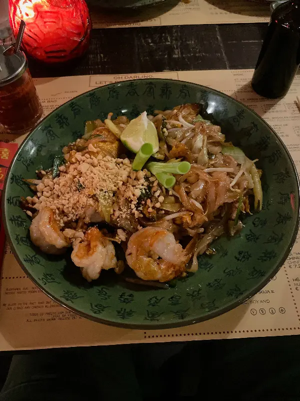 쌀국수와 함께 팟타이(Pad Thai)도 맛보았다. 접시에 담긴 팟타이 위에는 잘게 부순 땅콩 가루와 라임 조각이 얹어져 있었다.