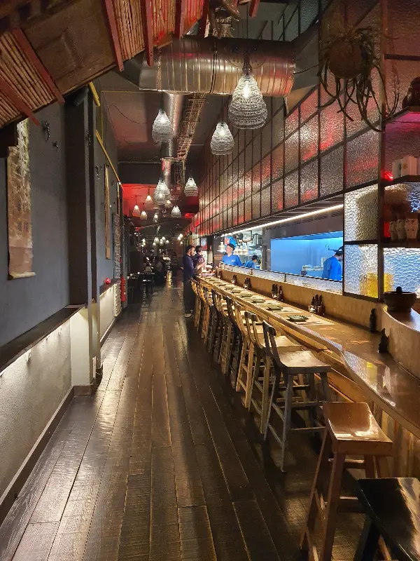 문을 열고 들어서자, 고급스러운 동양풍의 인테리어가 눈에 띄었다. 은은한 조명 아래 놓인 테이블과 의자, 벽면에 걸린 그림들은 편안하면서도 세련된 분위기를 자아냈다. 밖에서 보았던 강렬함과는 또 다른, 섬세하고 따뜻한 공간이었다. 혼자 방문했음에도 불구하고 직원분들은 매우 친절하게 맞아주셨고, 바 자리에 앉아도 괜찮은지 먼저 물어봐 주는 배려에 감동했다.